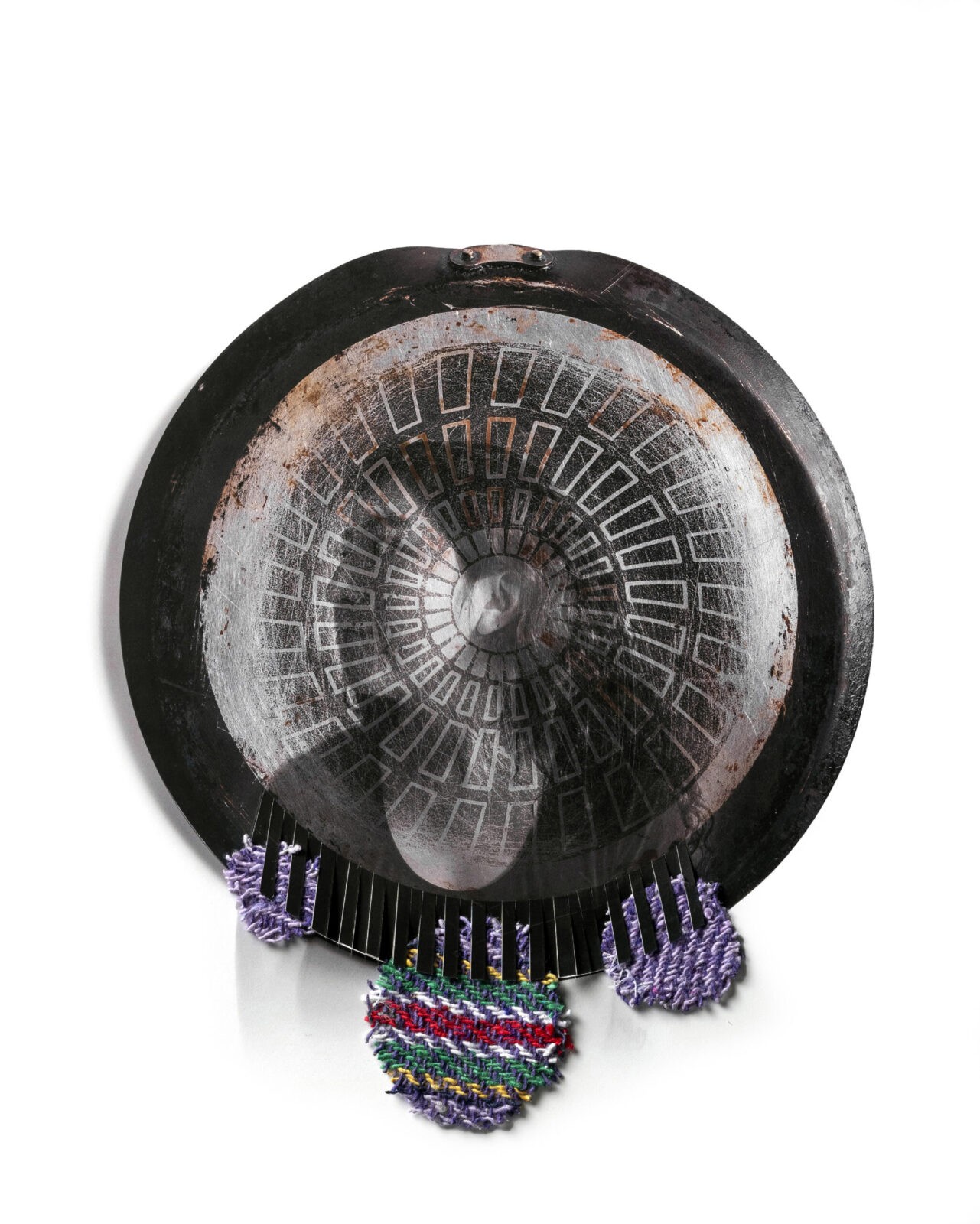 Lou Peralta. From the Comalli series. Archival pigment print on Hahnemühle Photo Rag Ultra Smooth paper with jerga fabric attached with archival glue and tape. Edition of 6 each size, each piece is a unique variant.