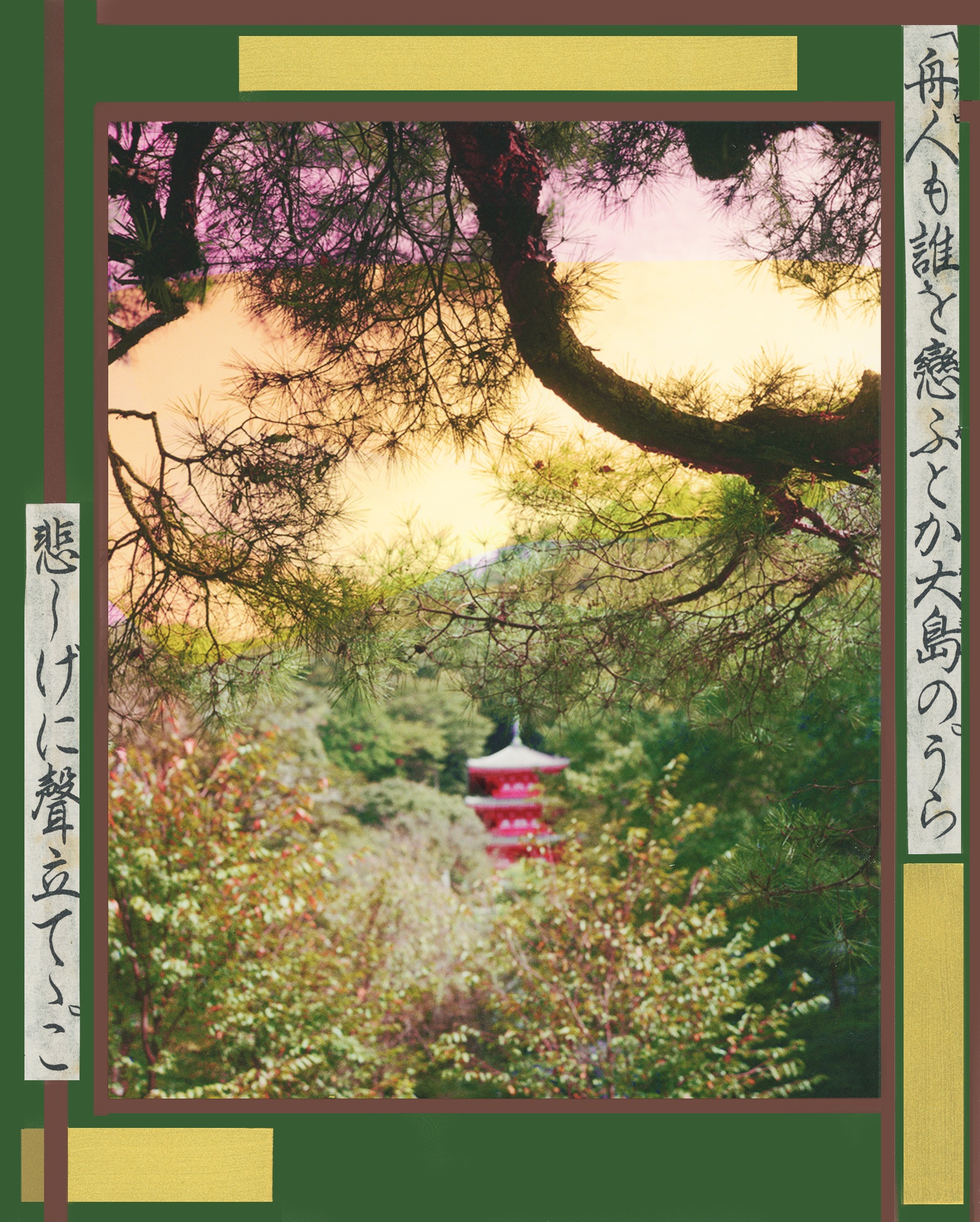 Aline Smithson. Archival pigment ink print with hand applied guildling and text from ancient Japanese poetry books. Unique variant from edition of 15.