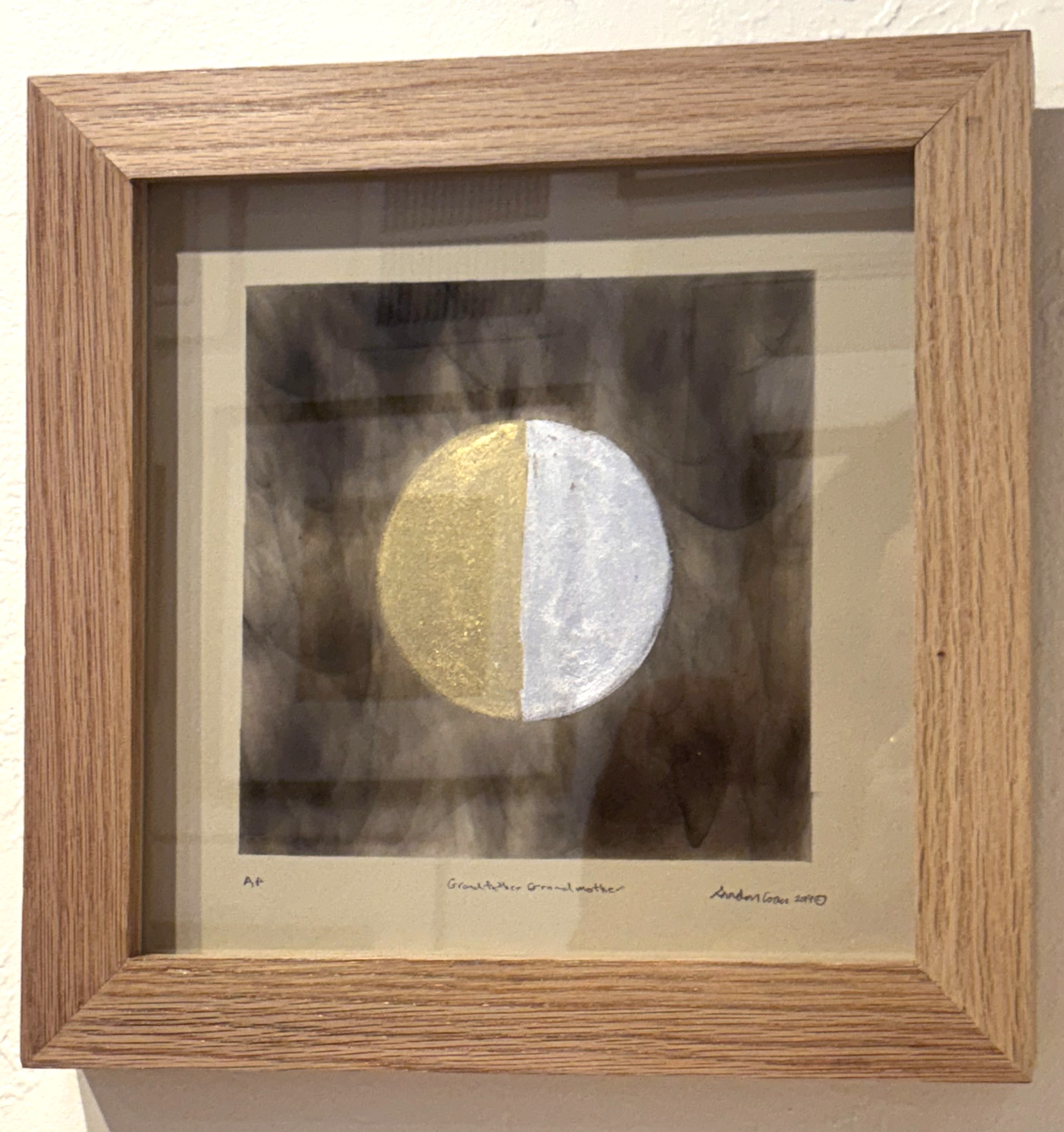 Gordon Coons. Ojibwa & Ottawa – tribes. 24k gold and silver leaf, Framed block print with cedar smoke. Signed, titled, dated, and editioned print recto.